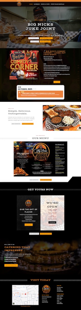 Big Nick’s Juke Joint needed a site that felt as bold and flavorful as their BBQ and soul food. We completely rebuilt their website from the ground up—creating all copy, designing a modern user-friendly layout, and optimizing every page for local search visibility.